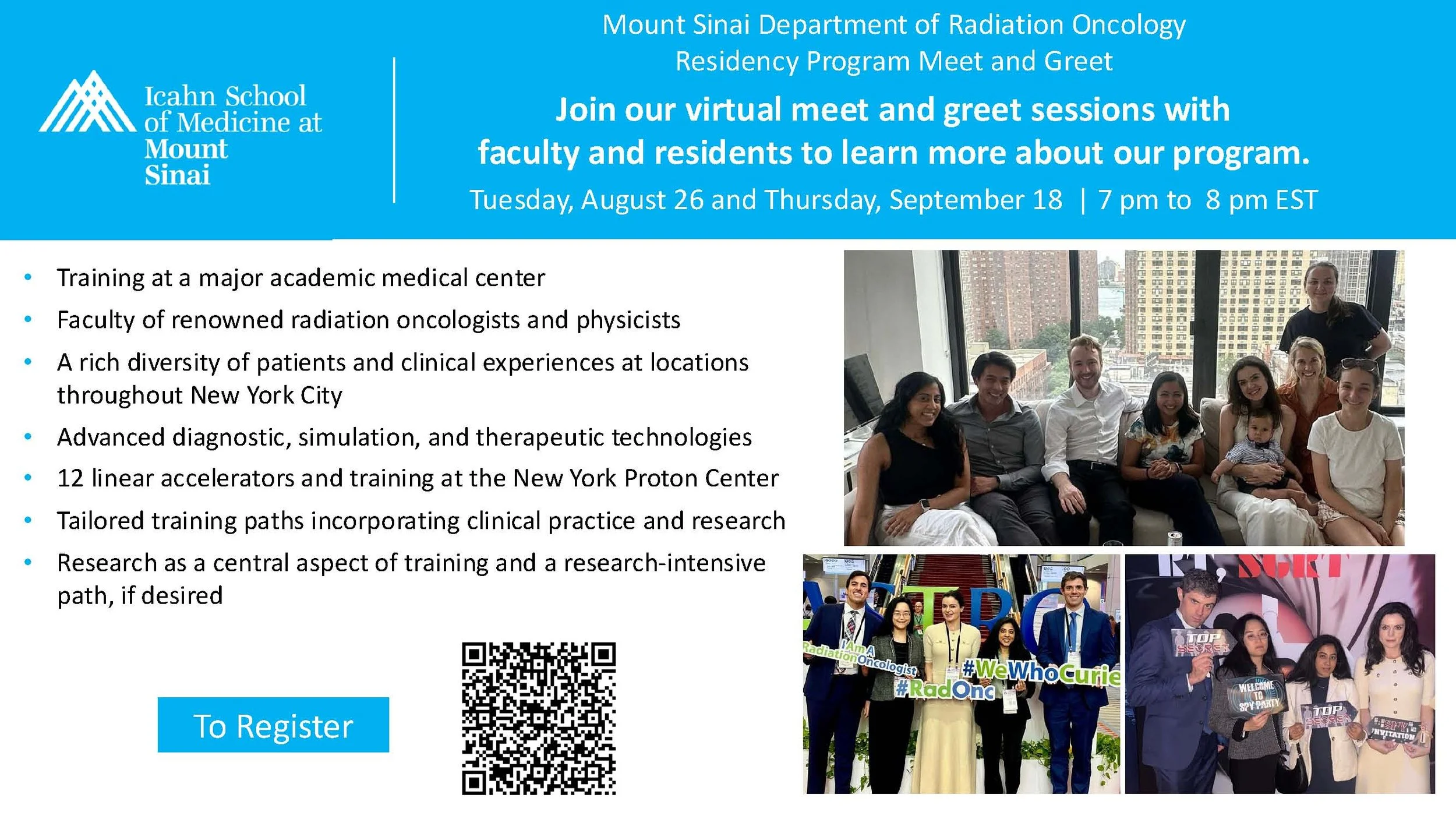 For medical students interested in virtually meeting with current radiation oncology residents to learn more about the program, the field of radiation oncology, and the interview process